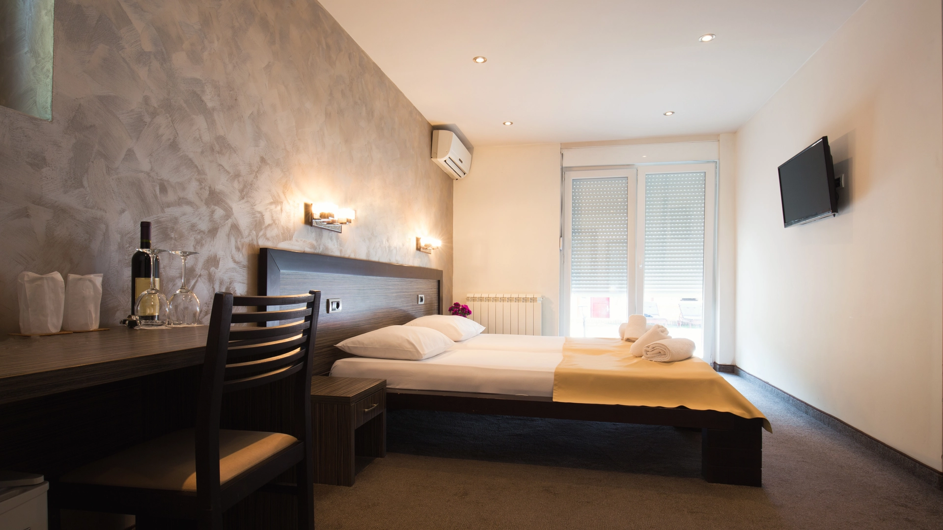 Pokoje se širokou a pohodlnou manželskou postelí či oddělenými lůžky, moderní koupelnou a nadstandardní výbavou.